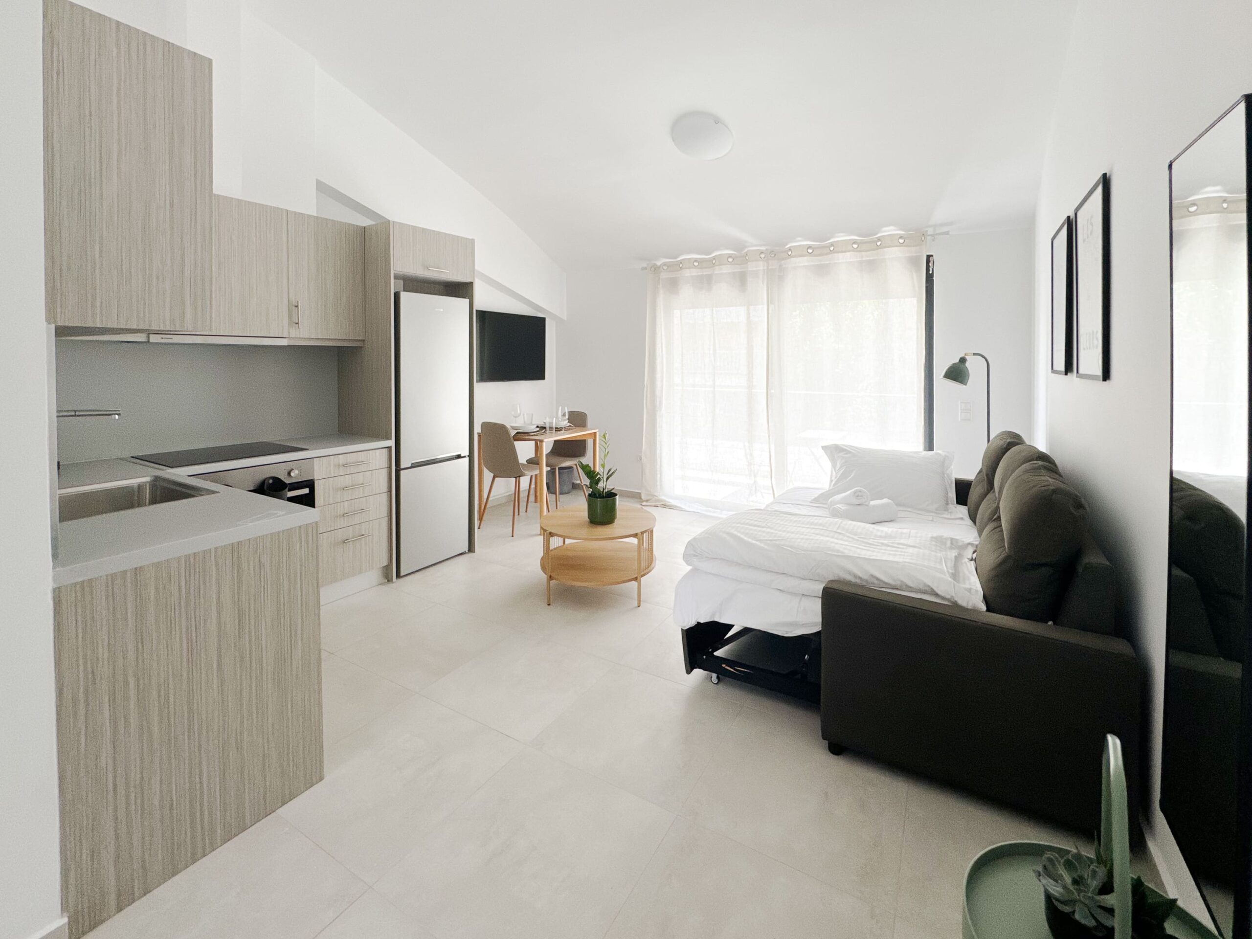Enjoy moments of true relaxation in a private and peaceful setting at Noon Residences. This fully furnished superior apartment in Athens offers a cozy sitting area with a sofa bed, non-smoking environment, and a private balcony that invites you to unwind. Located among the thoughtfully designed apartments in Exarchia Athens, it’s ideal for travelers seeking both comfort and convenience. The modern bathroom with a quality shower and premium bath amenities completes the tranquil experience — all enhanced by the ease of Noon self check-in for maximum flexibility and independence during your stay.